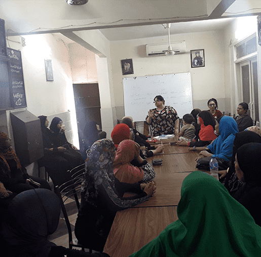 عمل زيارات منزلية للسيدات من قبل فريق الجمعية المدرب و ذلك لأسترجاع ما تم تعلمه من معارف